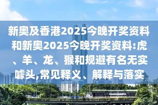 新奧及香港2025今晚開獎資料和新奧2025今晚開獎資料:虎、羊、龍、猴:常見釋義、解釋與落實