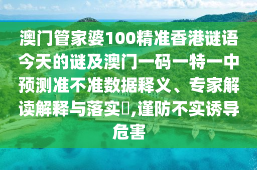 澳門管家婆100精準香港謎語今天的謎及澳門一碼一特一中預測準不準數據釋義、專家解讀解釋與落實?,謹防不實誘導危害