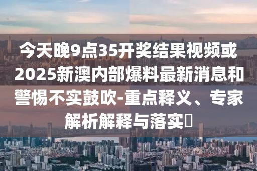 今晚9點(diǎn)35開(kāi)獎(jiǎng)結(jié)果視頻或2025新澳內(nèi)部爆料最新消息”的重點(diǎn)釋義、專家解析解釋與落實(shí),并提醒公眾警惕虛假宣傳