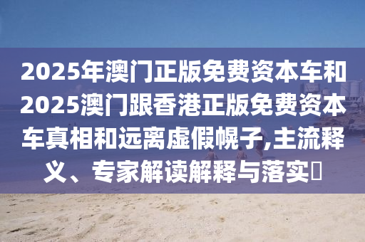 2025年澳門正版免費資本車和2025澳門跟香港正版免費資本車真相和遠離虛假幌子,主流釋義、專家解讀解釋與落實?