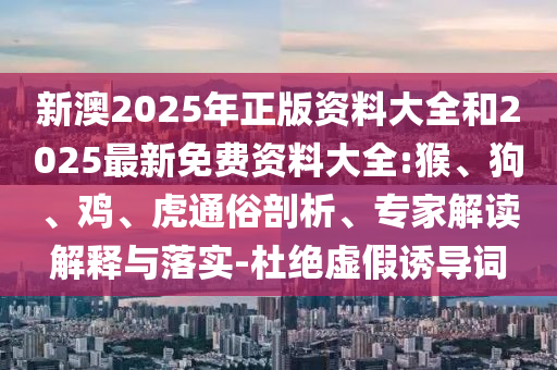 新澳2025年正版資料大全和2025最新免費資料大全:猴、狗、雞、虎通俗剖析、專家解讀解釋與落實-杜絕虛假誘導詞