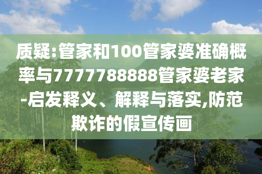 摘要:針對管家和100管家婆的準確概率問題,以及關于7777788888管家婆老家的宣傳內容,需要謹慎對待。對此,建議消費者保持警惕,理性思考,防范欺詐行為。對于相關宣傳畫,應進行啟發釋義和解釋落實,避免誤解和誤導。呼吁相關部門加強監管,確保宣傳真實可靠,維護消費者權益。以上內容僅供參考,具體細節需要進一步核實和研究。