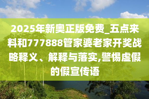 2025年新奧正版免費_五點來料和777888管家婆老家開獎,警惕虛假的假宣傳語”的戰略釋義、解釋與落實