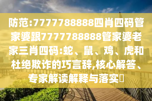 防范:7777788888四肖四碼管家婆跟7777788888管家婆老家三肖四碼:蛇、鼠、雞、虎和杜絕欺詐的巧言辭,核心解答、專家解讀解釋與落實?