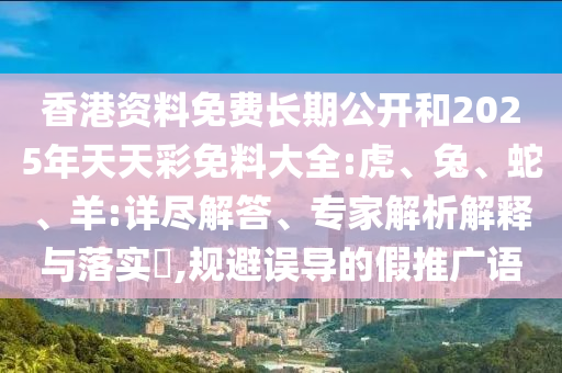 香港資料免費長期公開和2025年天天彩免料大全:虎、兔、蛇、羊:詳盡解答、專家解析解釋與落實?,規避誤導的假推廣語