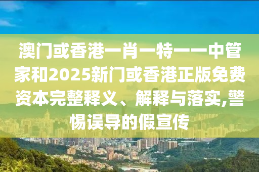 澳門或香港一肖一特一一中管家和2025新門或香港正版免費資本釋義、解釋與落實的相關內容,以及警惕誤導的假宣傳