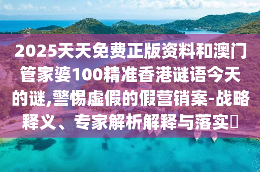 2025天天免費正版資料和澳門管家婆100精準香港謎語今天的謎,警惕虛假的假營銷案-戰略釋義、專家解析解釋與落實?