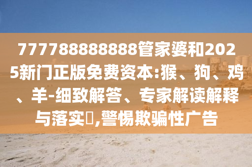 今天我們將深入探討您提供的關鍵詞,包括“777788888888管家婆”,“2025新門正版免費”,“資本”,“猴、狗、雞、羊”,以及警惕虛假宣傳等內容,我們將逐一為您解釋這些關鍵詞的含義,并給出具體的解讀與落實建議,提醒公眾在面對各類宣傳信息時,保持警惕,避免受到欺騙性廣告的影響。