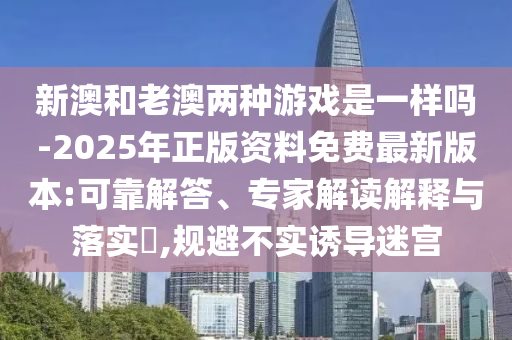 新澳和老澳兩種游戲是否一樣”的問題,以及關于2025年正版資料免費最新版本的相關解答、專家解讀解釋與落實的內容,我們需要進行清晰的釋義、解釋,并提醒公眾警惕虛假宣傳,避免受到不實誘導。