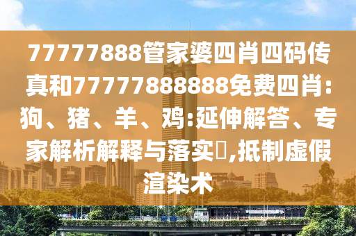 77777888管家婆四肖四碼傳真和77777888888免費四肖:狗、豬、羊、雞:延伸解答、專家解析解釋與落實?,抵制虛假渲染術