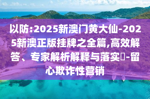 以防:2025新澳門黃大仙-2025新澳正版掛牌之全篇-留心欺詐性營銷”的高效解答、專家解析解釋與落實(shí)警惕虛假宣傳的文章