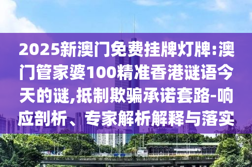 2025新澳門免費掛牌燈牌:澳門管家婆100精準香港謎語今天的謎:響應剖析、專家解析解釋與落實