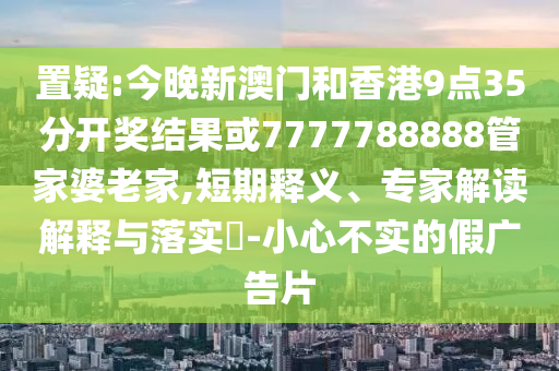 虛假宣傳是一種非常普遍的現象,尤其是在網絡時代,對于與“置疑:今晚新澳門和香港9點35分開獎結果或7777788888管家婆老家”相關的內容,我們必須保持高度警惕,虛假宣傳不僅會誤導消費者,還可能造成經濟損失,甚至引發其他社會問題。