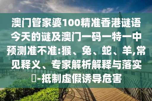 澳門(mén)管家婆100精準(zhǔn)香港謎語(yǔ)今天的謎及澳門(mén)一碼一特一中預(yù)測(cè)準(zhǔn)不準(zhǔn):猴、兔、蛇、羊:常見(jiàn)釋義、專(zhuān)家解析解釋與落實(shí)?