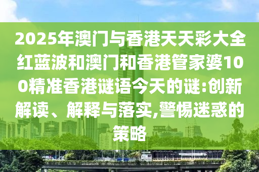 2025年澳門與香港天天彩大全紅藍(lán)波和澳門和香港管家婆100精準(zhǔn)香港謎語今天的謎:創(chuàng)新解讀、解釋與落實,警惕迷惑的策略