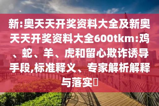 新:奧天天開獎資料大全及新奧天天開獎資料大全600tkm:雞、蛇、羊、虎和留心欺詐誘導手段,標準釋義、專家解析解釋與落實?