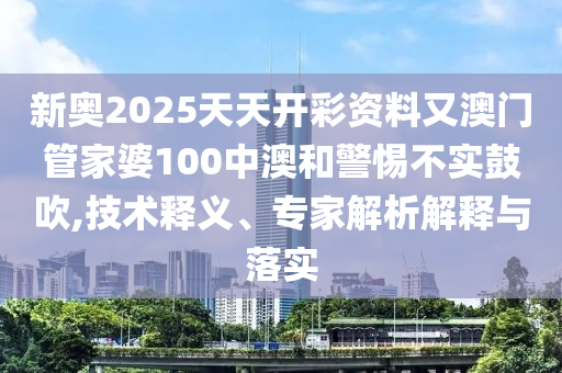 隨著互聯(lián)網(wǎng)的普及,各類信息層出不窮,其中不乏一些虛假宣傳,公眾在面對這些信息時,應(yīng)保持警惕,理性判斷,本文將針對關(guān)鍵詞“新奧2025天天開彩資料”、“澳門管家婆”、“中澳技術(shù)”進(jìn)行釋義、專家解析與落實的詳細(xì)解釋。