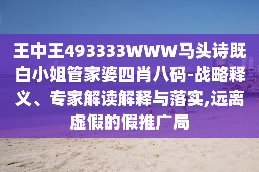 摘要:,,王中王493333WWW馬頭詩既白小姐管家婆四肖八碼”的主題,這篇內(nèi)容主要涵蓋了戰(zhàn)略釋義、專家解讀解釋與落實(shí)等方面的信息。文章詳細(xì)解讀了相關(guān)內(nèi)容的含義,強(qiáng)調(diào)了遠(yuǎn)離虛假假推廣局的重要性。通過專家的解讀,幫助讀者更好地理解并實(shí)際應(yīng)用這些策略。提醒公眾要警惕虛假宣傳,確保信息的真實(shí)性和可靠性。