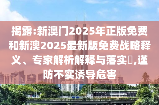 關于揭露“新澳門2025年正版免費和新澳2025最新版免費戰略”的釋義、專家解析解釋與落實,以及謹防不實誘導危害的警示