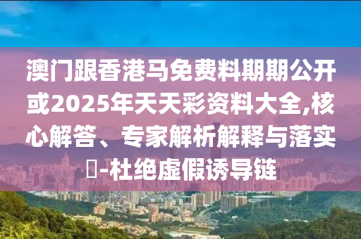 澳門跟香港馬免費料期期公開或2025年天天彩資料大全,核心解答、專家解析解釋與落實?-杜絕虛假誘導鏈