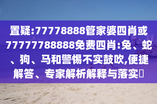 77778888管家婆四肖或77777788888免費四肖:兔、蛇、狗、馬”的解析與警惕不實宣傳