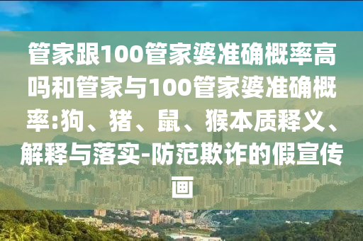摘要:關于管家與100管家婆的準確性及其預測動物如狗、豬、鼠、猴的本質釋義,目前無法確定其準確概率高低。對此類服務應保持警惕,防范欺詐假宣傳。建議消費者理性對待,不可過分依賴此類預測服務,以免受到不必要的損失。