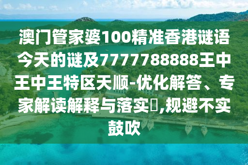 澳門管家婆100精準香港謎語今天的謎及7777788888王中王中王特區天順:優化解答、專家解讀解釋與落實?